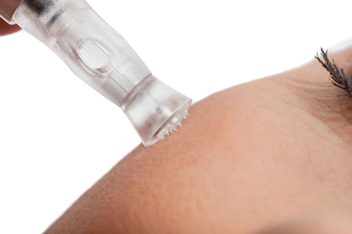 Ultrafeine Meso-Spitzen, mit nur ca. 0,2 - 0,3 mm Nadeln und einstellbaren Needlingkopf, stanzen wie ein Stempel in die Epidermis. Die Haut behält ihre Schutzfunktion. Völlig schmerzfrei bewegen sich die Meso-Spitzen präzise und gleichmäßig in die Haut. Konzentrierte Wirkstoffe wie Hyaluron dringen direkt in die tieferen Strukturen der Haut ein.